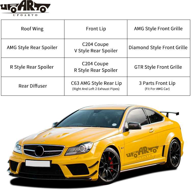 Fitting exterior accessories helps protect the body of your Mercedes-Benz C Class W204 from damage and wear caused by environmental factors, road debris and harsh weather conditions. Products such as Mercedes-Benz C Class W204 rear lips, Mercedes-Benz C Class W204 front lips can protect the outer surface of the car.